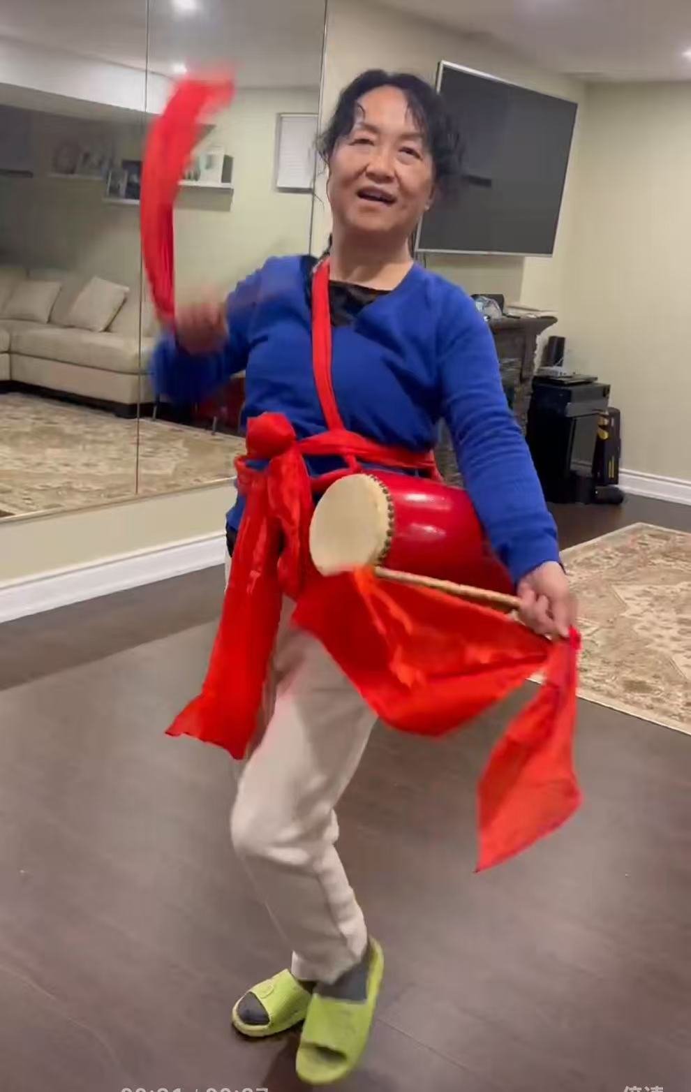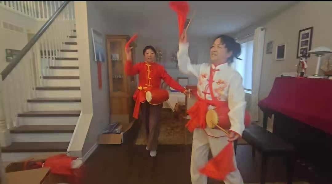 为了赶在圣诞长假期前让学员们尽快上手,收到腰鼓的第二天,教练文嘉莉就在自己家中给部分骨干学员上了第一堂课。