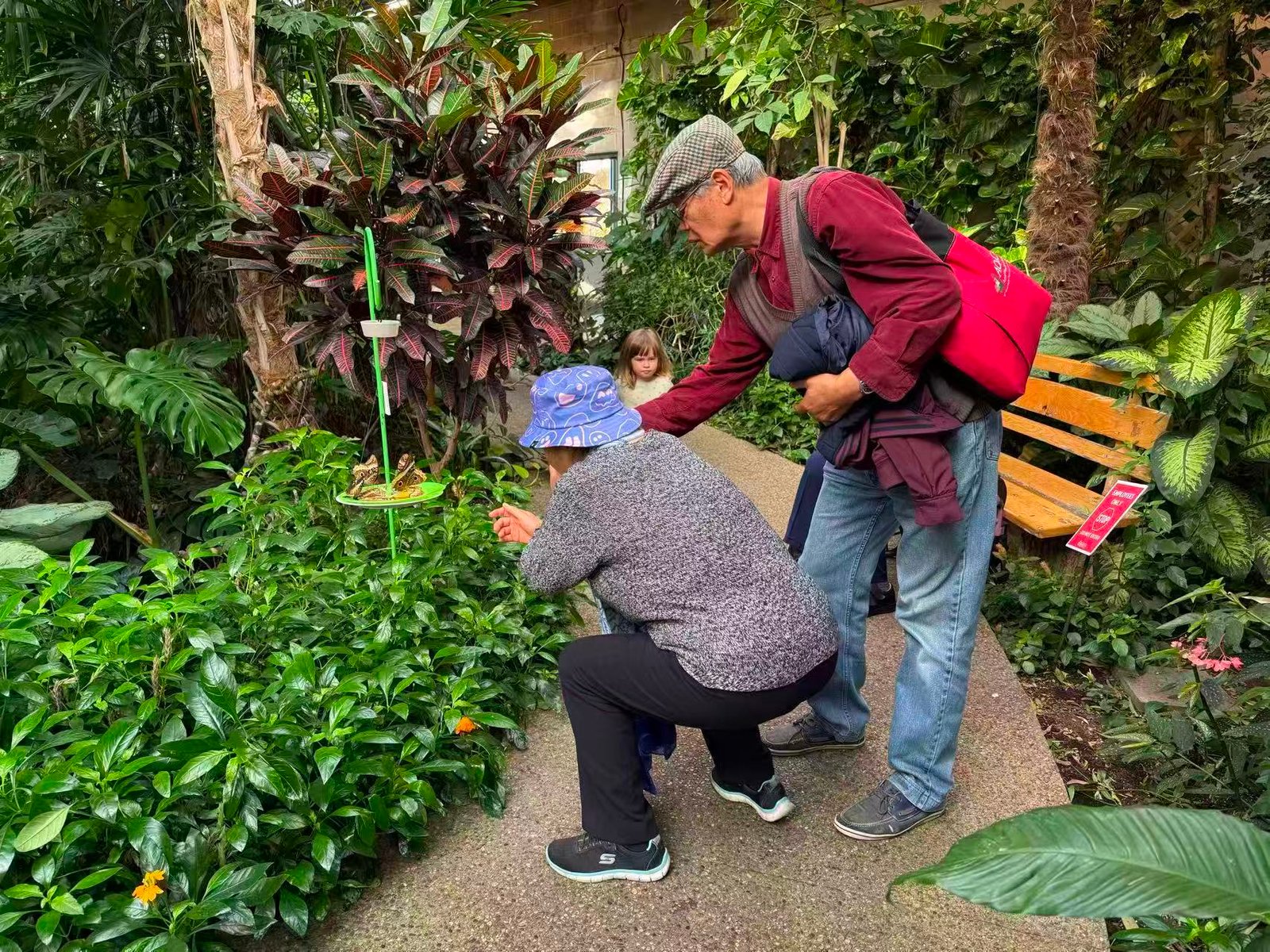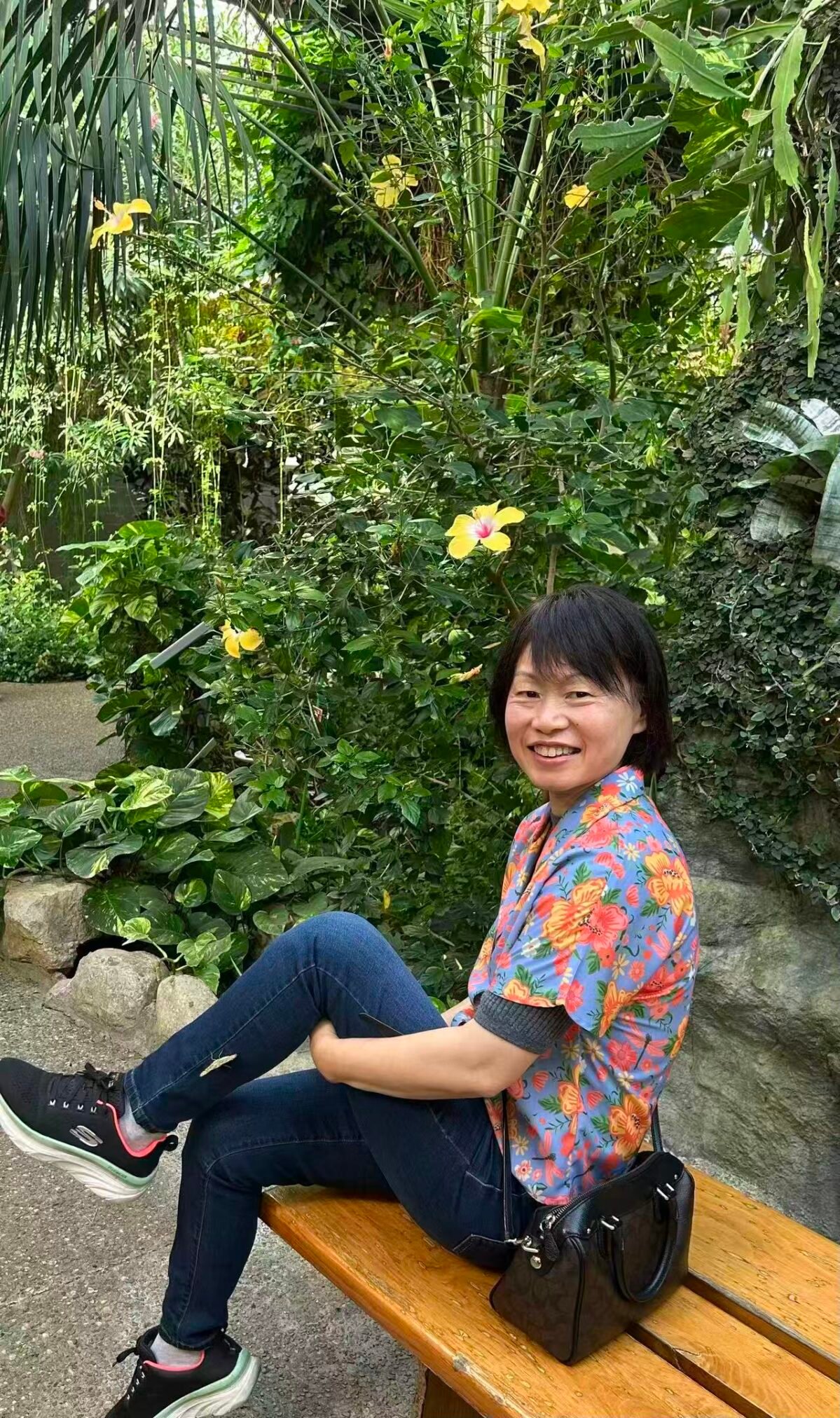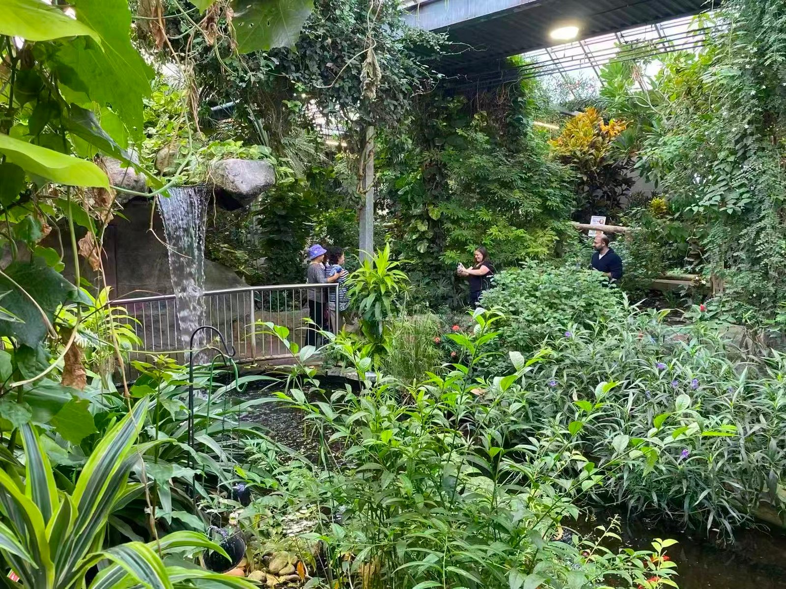 这是一个温室小公园,它有着人造的热带雨林小环境,非常潮湿,体感温度高达28摄氏度,刚才还在犹豫着要不要脱去外套的几位大姐,现在拿定主意了:咱还是轻装上阵吧。