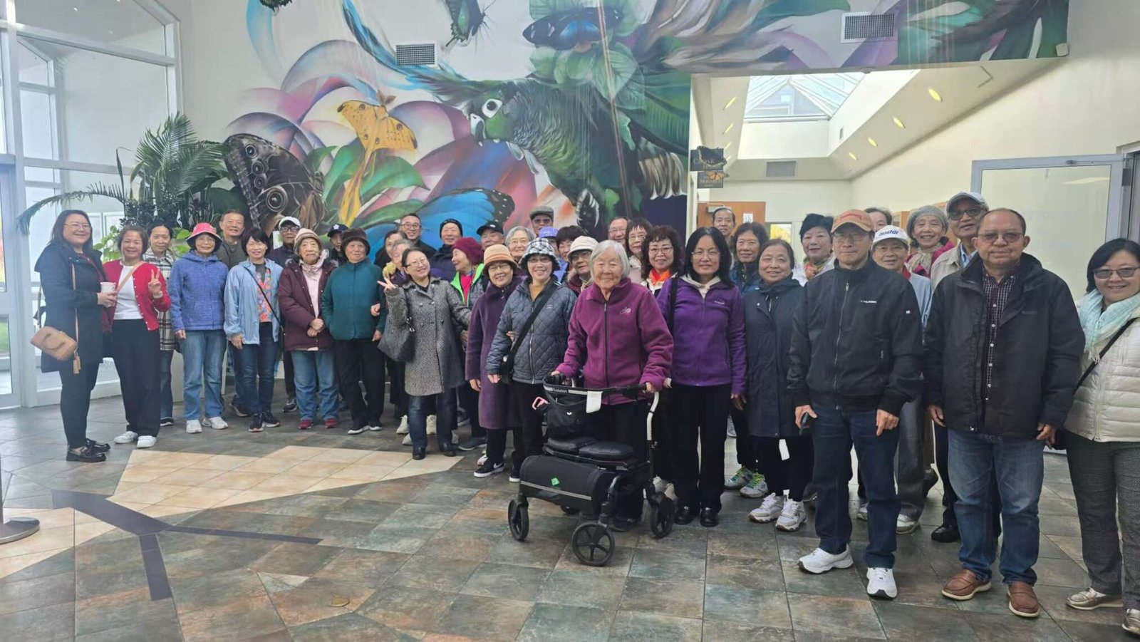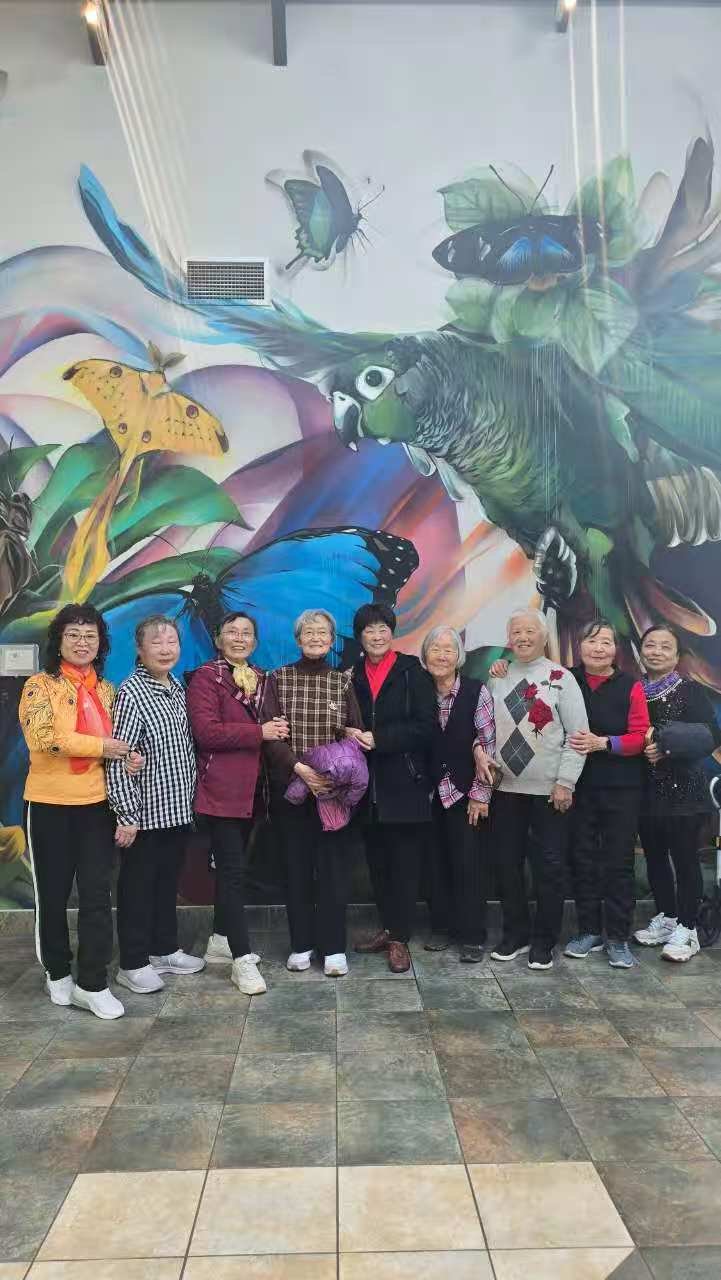 通知一经发出,常青群里顿时就热闹起来了。大家相互转告,争相报名。很快,一只由年愈花甲的老朋友为主体的蝴蝶馆探秘队和美食好吃团就宣告成立了!华协会会长 Sharon 担任领队,副会长Molly 等4人为当天的义工。