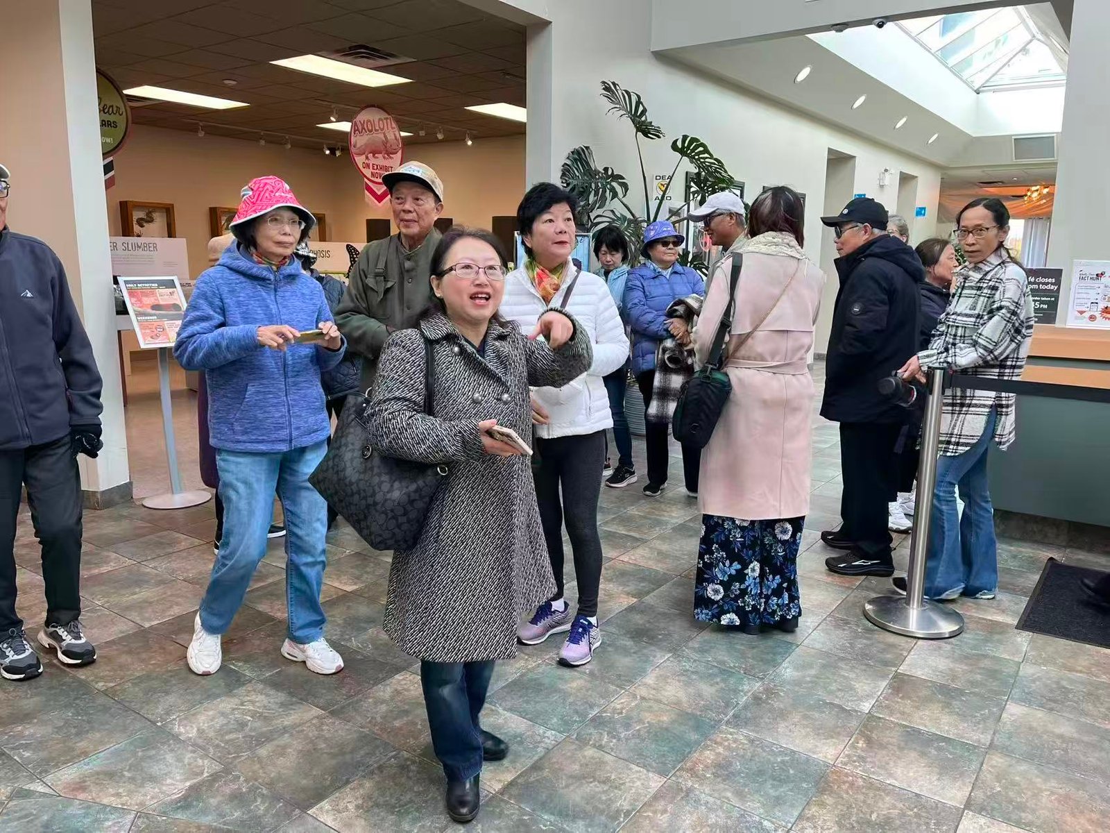 我们浩浩荡荡的队伍秩序井然地排队进入蝴蝶馆,很快就把入口处的大厅占满了。在地广人稀的加拿大,这种情形一年也没有几次吧。管理员做了简单的介绍后,大家终于得以进入到温室馆,到蝴蝶的领地一探究竟。